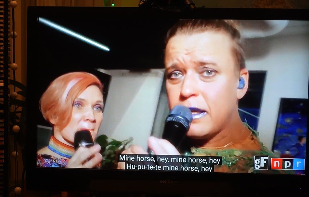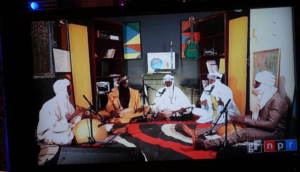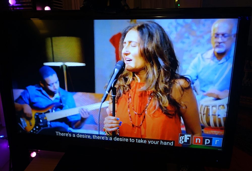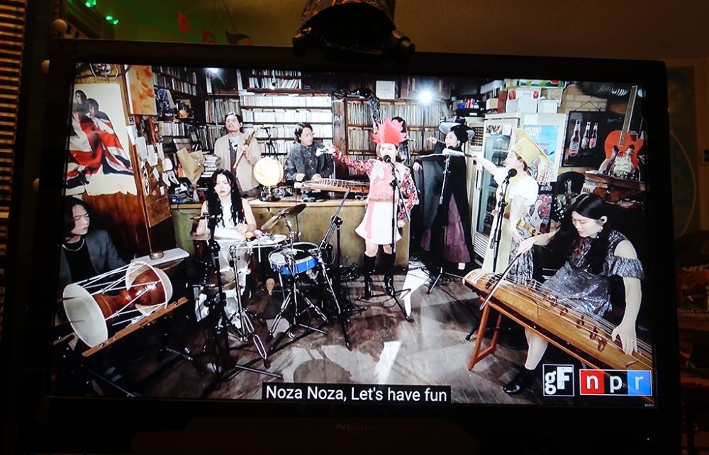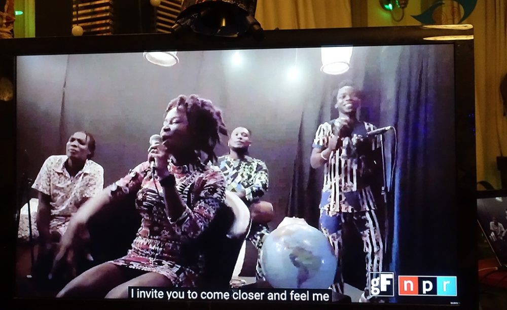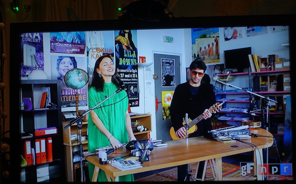 This year’s selection of nine acts was vibrant, varied and consistently rewarding. As someone who has always enjoyed clawing through dense crowds, or crawling and crouching at stage side with my camera to get fab photos of the artists, I have to say that photographing the TV is not quite as much fun. (I could have gone for screenshots, but that would be still less fun.) However, one distinct advantage of the online version of globalFEST is subtitles translating most of the lyrics, adding an often-fascinating dimension you don’t get in the live version.