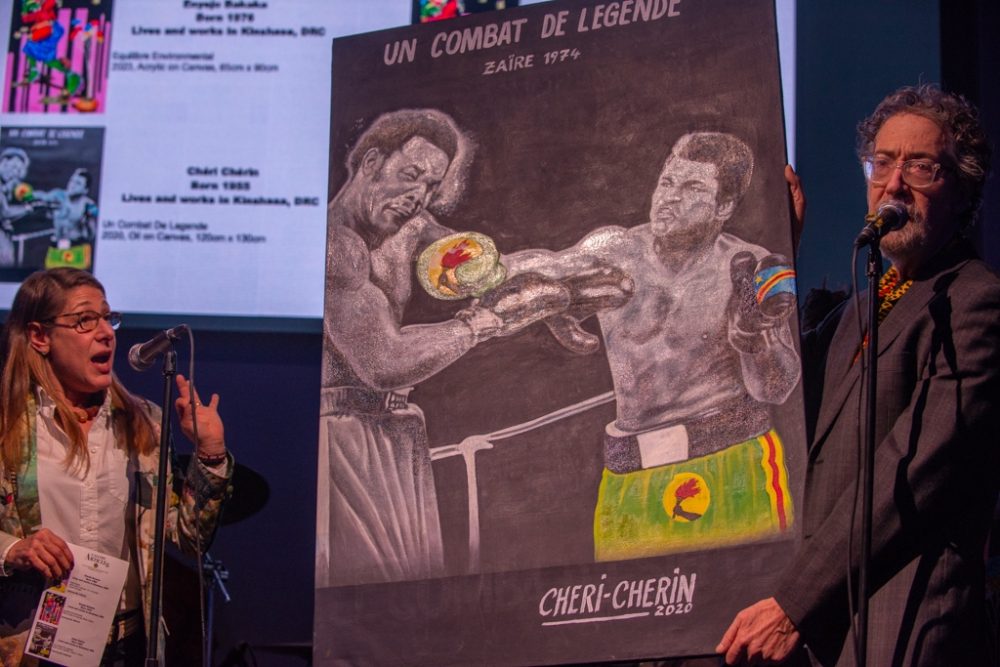 At our Friday soukous-focused event, we were thrilled to feature a groundbreaking exhibition of vibrant contemporary Congolese paintings. Elizabeth Jaffee presented this remarkable showcase from Washington D.C.'s Gallery Article 15, a unique gallery distinguished as the only one in the U.S. specializing in contemporary Congolese art. The collection, comprising around fifteen exquisite paintings, captivated and received admiration from all attendees.
