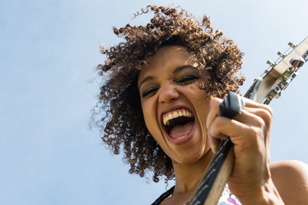 “Emicida is so powerful,” Tréa says. “And Arrigo too. Really crazy and funny, but also the hardest concert I've ever studied. It's completely difficult, really difficult. But it gave me this consciousness that I was really powerful, that I had a lot of energy and power. I loved it, but also I felt like I was preparing myself to do it for my own art. I used to sing, but like small parts in the concerts. And not only guitar, but also playing the cavaquinho and percussion. So I was practicing to be, you know, out there. I was playing for 200,000 – a lot of people. So it was about being comfortable with this kind of situation. I was used to playing for 50, maybe 100 or 200 people, and then now I was singing for a lot, a lot of people. So crazy. And I was just 20 years old.”