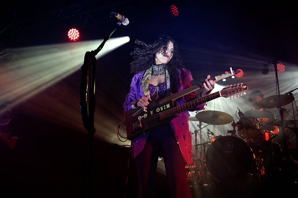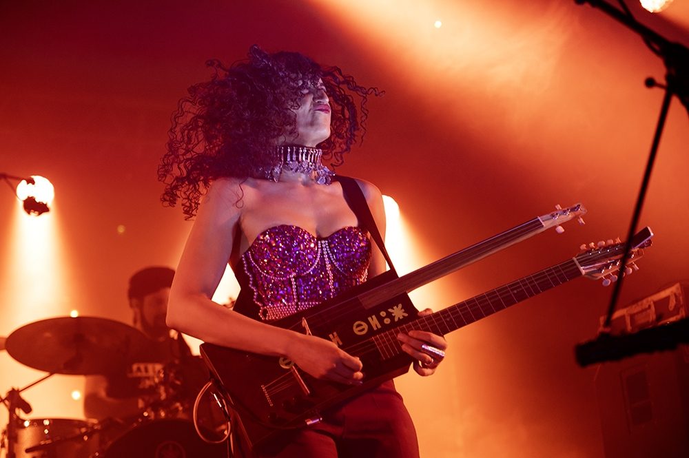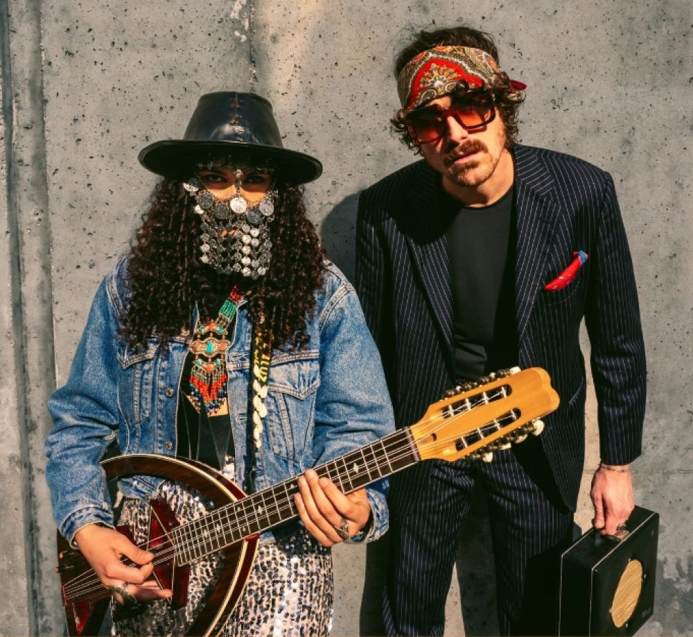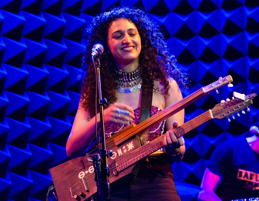 Mansour: Yes. So, one neck is an awisha, which sounds like an ngoni, and the other is the mandol. which you find a lot in Algeria and Eastern Morocco, but with the quarter tones. And honestly, the idea of the double neck was just for flights, because we had a very difficult post-COVID tour in 2022. And with airlines, it was a nightmare. So even with one instrument, it was complicated. So we said, why not ask our crazy luthier to do this favor for us. And fortunately he did a great job and it made for both an interesting sound and visual.