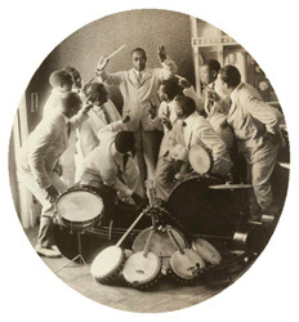 James Reese Europe, founder of the Clef Club Orchestra, here with one of his smaller ensembles that nevertheless featured a handful of banjos. This picture is from 1914, right at the dawn of jazz. Europe drew from African-American country songs, Broadway hits, minstrel tunes and ragtime—he led a dance orchestra after all. Europe's life alone would be a great Afropop program, although the sound quality on the existing recordings of Europe and his groups may give our fastidious sound engineers fits.