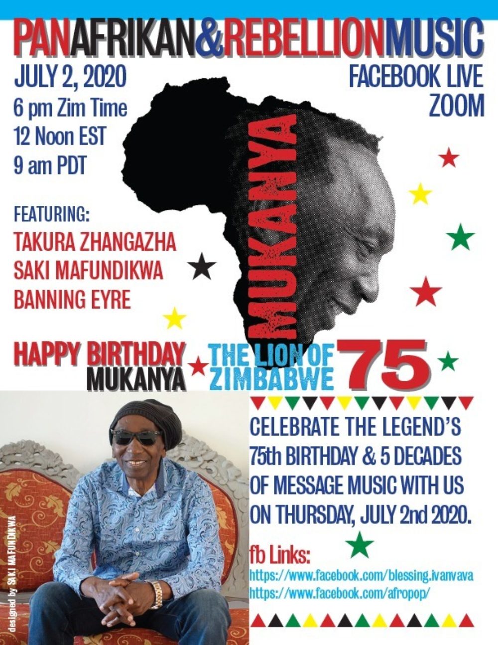 Thomas Mapfumo, "The "Lion of Zimbabwe," turns 75 today, and Afropop's Banning Eyre is celebrating with a panel discussion that we'll be streaming on Facebook Live starting at noon E.S.T. on Thurs. July 2.