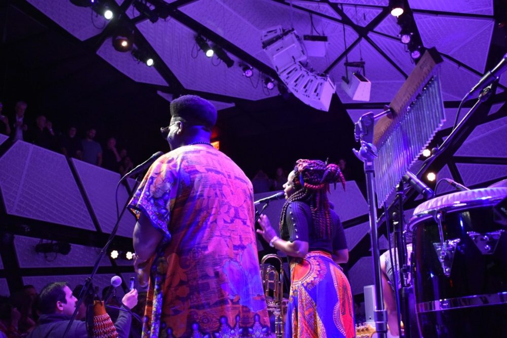 I don’t know what it says, but possibly the biggest, most climactic moment at Cimafunk’s New York debut was when the funk built and built and slowed and made way for . . . a big ol’ trombone solo. The sold-out crowd at Brooklyn’s National Sawdust, by then shaking and shimmying and slipping into salsa steps, just lost it.