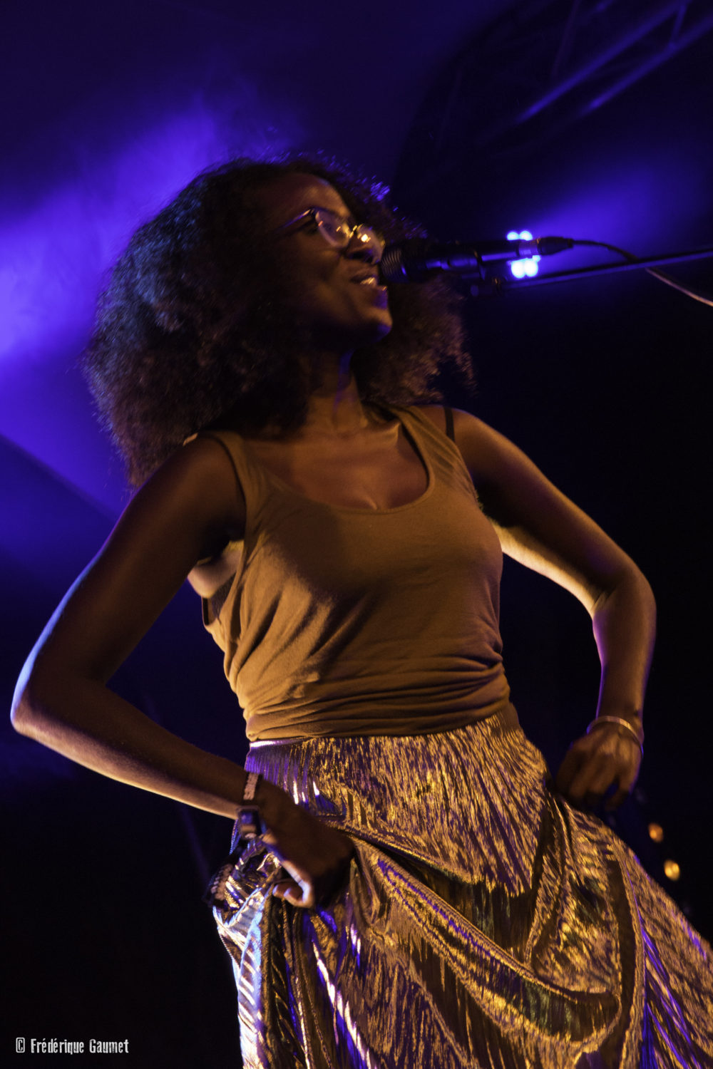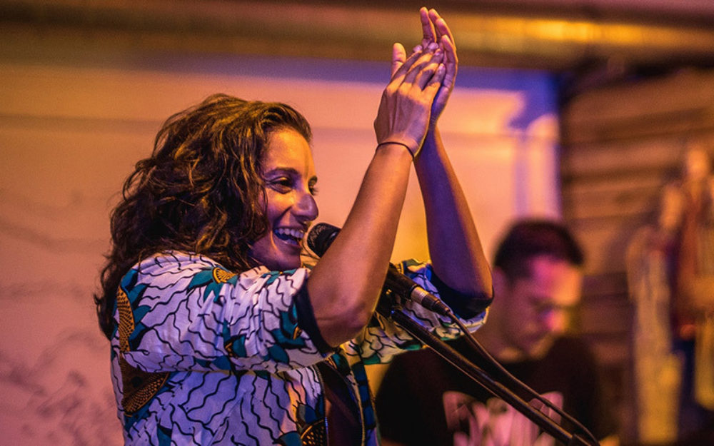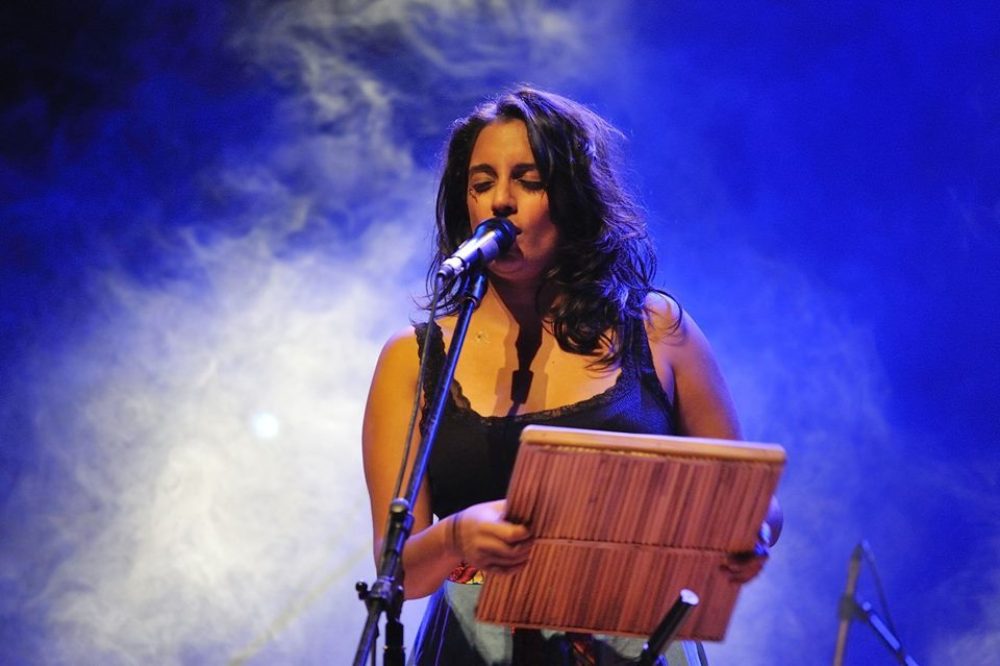 Singer, comedian, storyteller and poet Kaloune explores traditional music on stage through electro sounds. Sharing her passion for words, both French and Creole, and rhythm, she brought the audience into a trance with her unique songs full of poetry referring to remembrance, sacred rituals and femininity.After writing her first book Séga Bondyé Galé in 2014, she adapted it for theater. In 2017 she was awarded the Indian Ocean Music Prize for her diverse artwork and her strong personality. Besides singing and reciting poetry, Kaloune plays the mbira, an African musical instrument made of a wooden board with attached staggered metal prongs used during ritual ceremonies in Zimbabwe. Electro beats were supplied by Jako Maron.