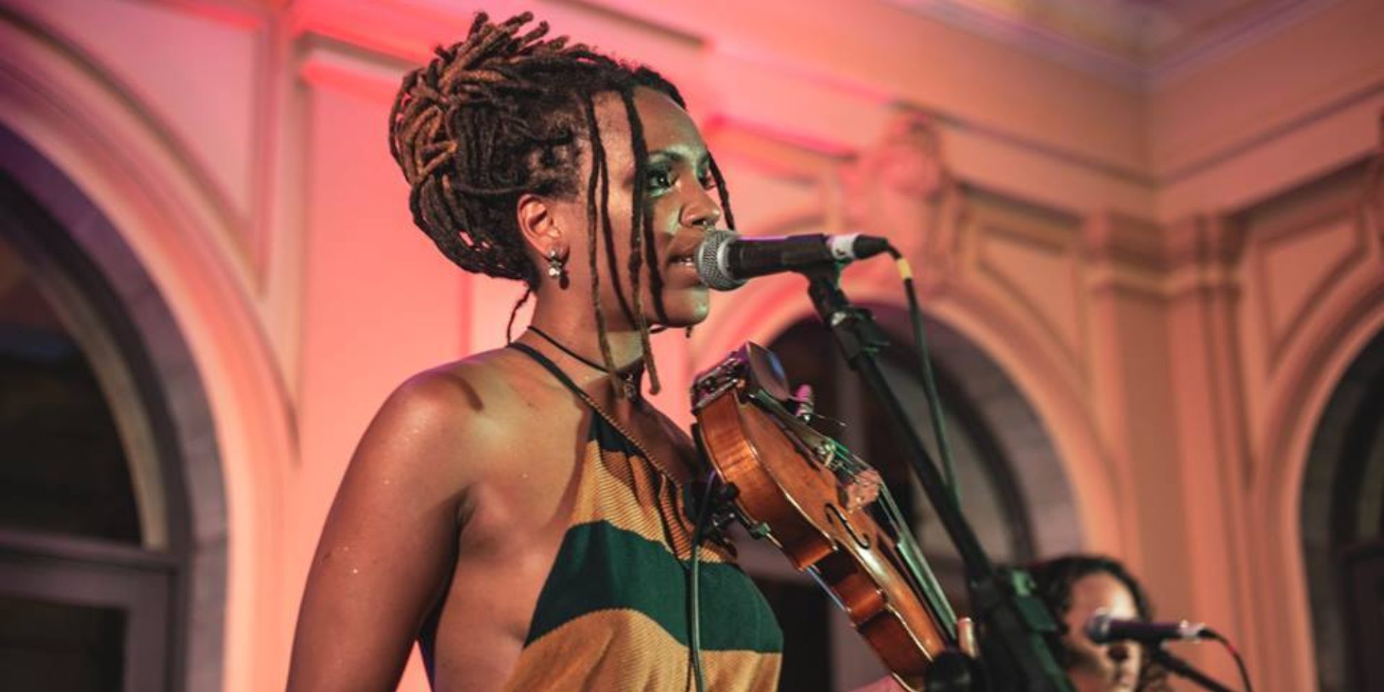 One of the big surprises of Música Mundo was the talented Brazilian singer/songwriter Sol Bueno, from the state of Minas Gerais. She is blessed with a soft, striking voice and plays percussion and viola caipira, a 10-string country guitar. Her self-written songs reflect the traditional life of the Cerrado region where she was born. Sol Bueno impressed us with her very natural, spontaneous presence. She has released one album called Poeira Dançante (2017).