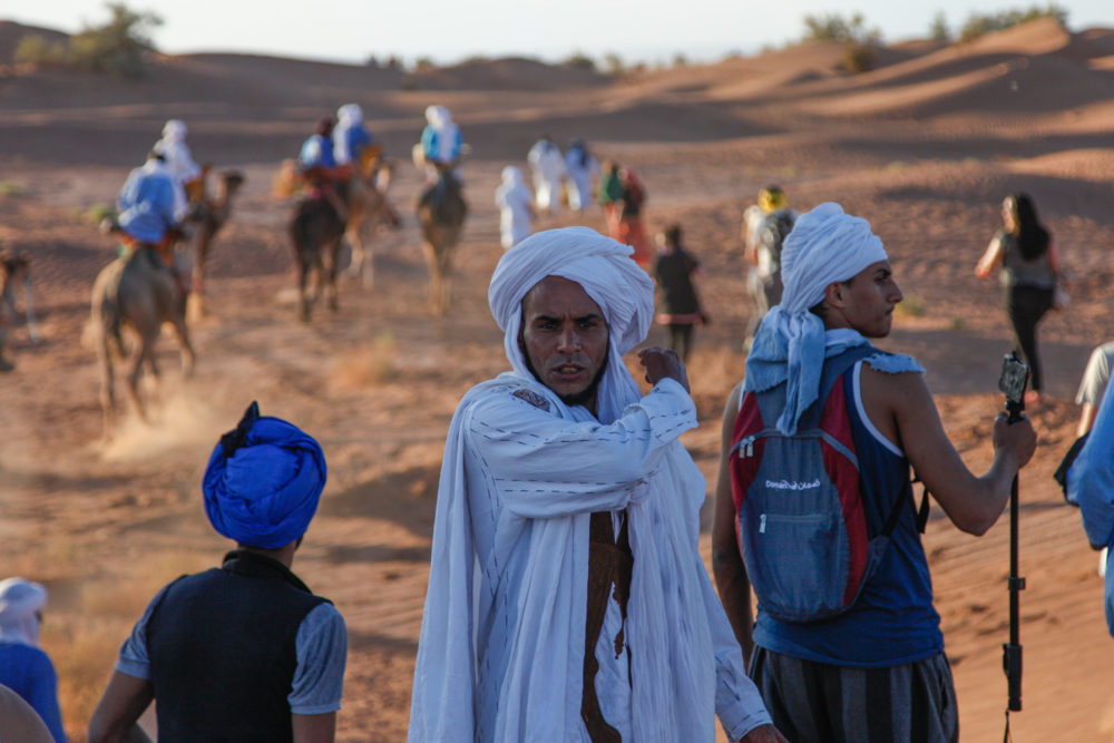 Though Taragalte was more grounded than I expected, some European (and Moroccan) festival-goers still bathed in fantasy. There was the group of older Germans dressed in bizarre misinterpretations of Amazigh attire, or the couple in white gandouras posing romantically in the dunes. Some young locals made sure to perform the identity expected of them — the mysterious custodian of an exotic way of life — competing for biggest cheche and oversalting conversations with the word "nomad."