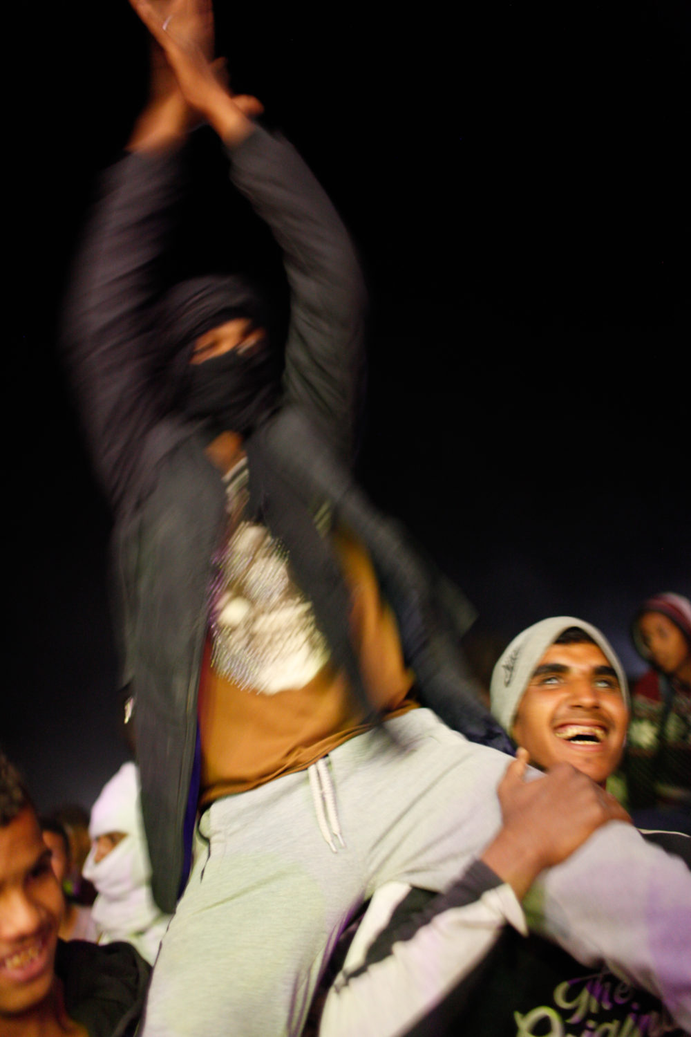 They enjoyed themselves ferociously. The young crowd — mostly teenage boys — seemed in constant flux between dancing ecstatically and throwing punches. “When they hear electric guitar, they go crazy,” Khalifa, of Generation Taragalte, told me. Some flavor of chemical intoxication turned the heat up, and the rebellious lyrics pushed it a notch further. But for every fight that broke out, the dust would settle and everyone would start dancing again.