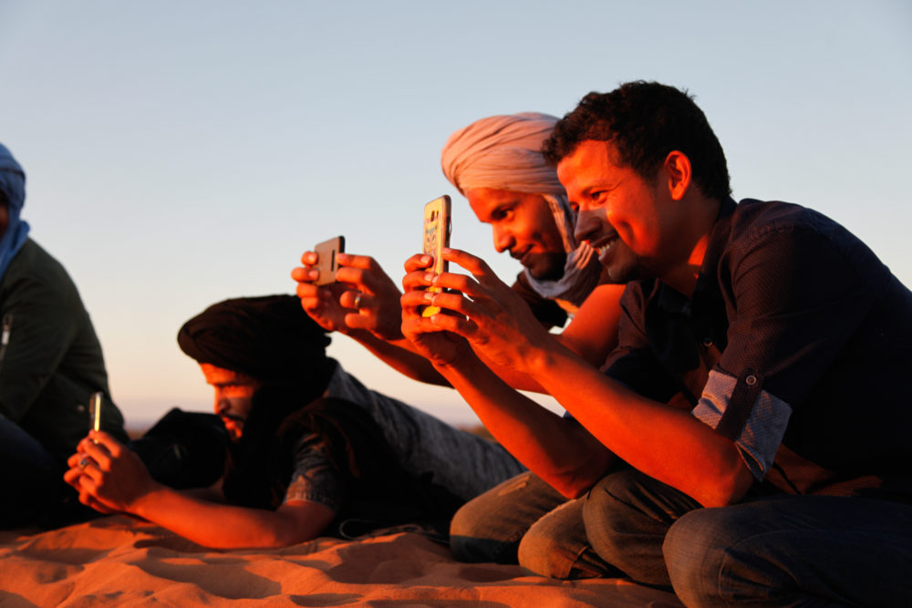 These bands write originals, but covers of Tinariwen and Tamikrest are a must, even though they can’t always understand the lyrics. Their idols are Tuareg, or Tamashek, an indigenous ethnic group related to yet distant from the Amazigh of M’hamid. The Amazigh members of Generation Taragalte can parse out the songs’ meanings for those who only speak Arabic.