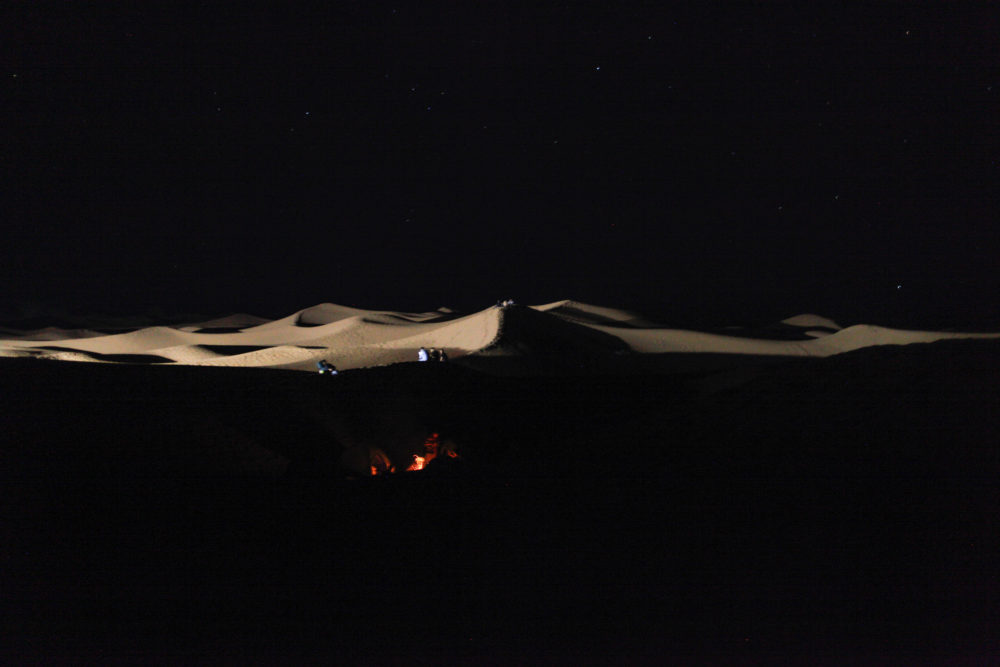 The setting sun drew a pilgrimage to the crests of the biggest dunes to soak up its luscious orange and red. Once its fire cooled to deep blue, the main stage came to life.