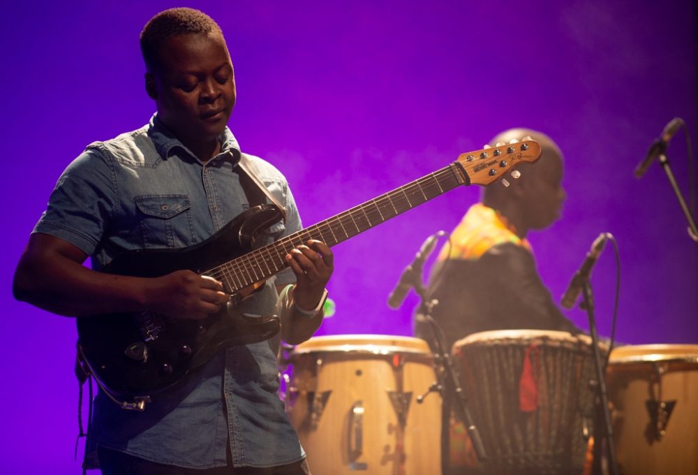 So about the band tonight: Juvenal Cabral Is the bass player and the director. He and the singer Micas Cabral, they come from this massive band in the Lusophone space called Tabanka Djaz. That's the most successful band from the 1980s until now in Guinea-Bissau. They are like stadium-popular. They are very professional, and play a mix of gumbe with zouk. Then on the electric guitar today it's going to be Eliseu Imbana. He played with the most recent formation of Super Mama Djombo. He's a very, very talented guy. He just moved to Lisbon. It has to work like a collective. All of them are very good.
