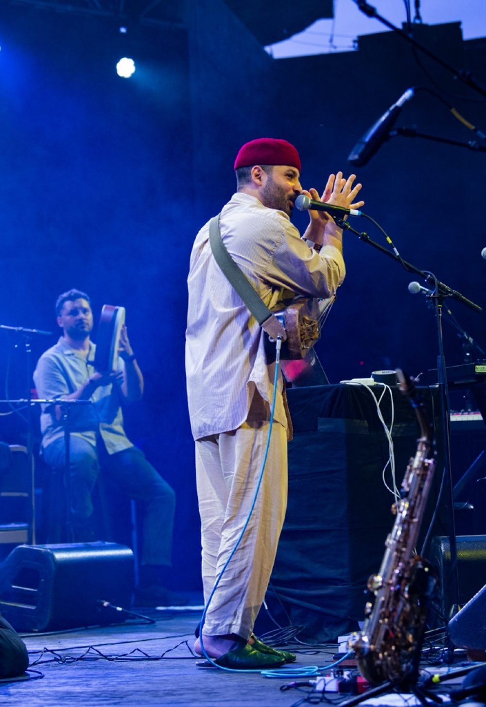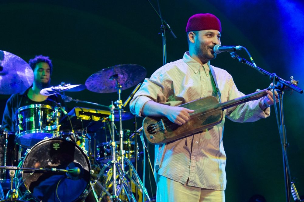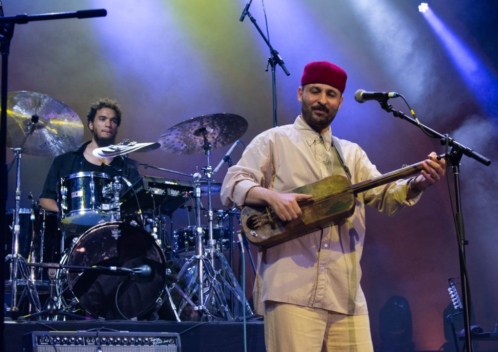 Next came a more joyful set from Tunesian singer/songwriter Nour Harkati, a Habibi Festival regular. French-Tunisian saxophonist and composer Yacine Boularés, another festival stalwart, led Harkati’s backing band. With his deep-toned guembri in hand, Harkati lulled the crowd with his silky voice and buoyant grooves. There was dancing, singing along and a generally joyous atmosphere as Harkati left the stage just after sunset.