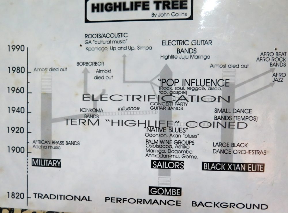 Collins has lived mostly in Ghana since 1968. He has performed with highlife bands, recorded and archived their music, written extensively on the genre as well as many other aspects of West African music, and in short, been a tireless documenter and champion of highlife. His Bokoor African Popular Music Archives and Foundation in the outskirts of Accra is home to one of the richest sources of recordings and information about Ghanaian highlife in particular.
