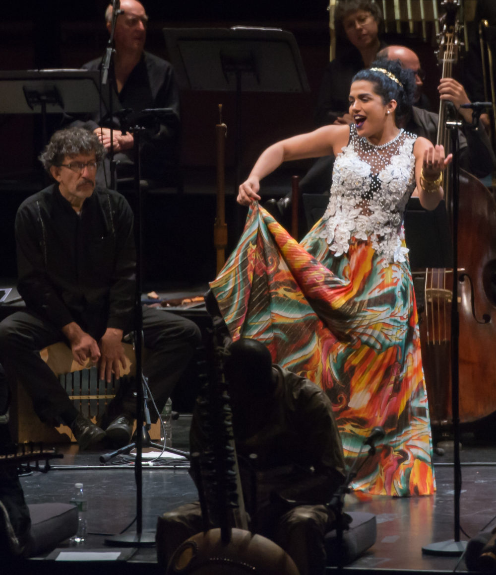 The fifth ensemble, seated at the front edge of the stage, performed on their own as a trio under the name 3MA—a coming together of Mali, Madagascar and Morocco (Maroc in French). Ballaké Sissoko on kora, Rajery on valiha, and Driss El Maloumi on oud together created entrancing webs of plucked-string virtuosity. Beyond these groupings, a superb set of vocal soloists were showcased: Maria Juliana Linhares of Brazil, Adriana Fernández of Argentina, Kasse Mady from Mali, and, from Venezuela, bassist Iván Garcia, who accompanied his powerful vocals with loose, fluid dance moves.