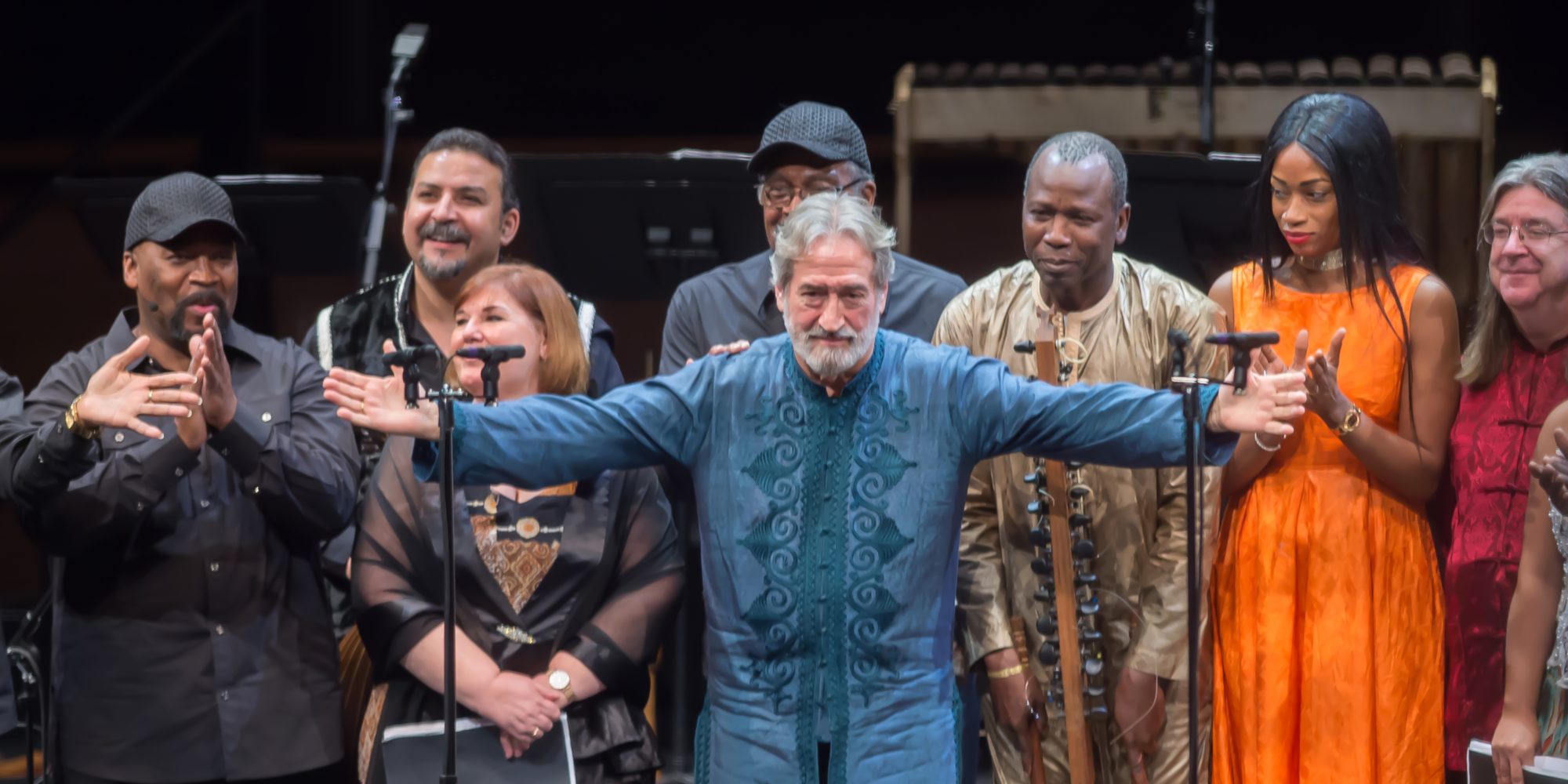 Spanish viol master and conductor Savall has spent the better part of five decades imagining and reimagining the past through music. With over 230 albums to his credit, he is one of the most creative and imaginative musical visionaries on the global scene today. And this performance provided ample evidence of his audacious reach. Stretching over two hours, with an intermission, the show followed a consistent structure: a short segment of narration with spare musical accompaniment, followed by one or two ensemble pieces. Text captions high above the stage provided translations of lyrics, whether in Bambara, Spanish, Catalonian or Portuguese.