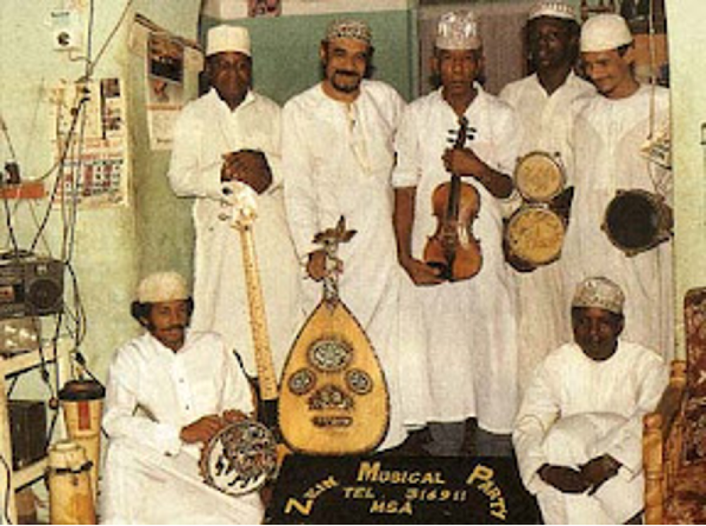 A group that plays Swahili music with influences from the Arabic and Indian worlds, known as Taarab. From Mombasa, Kenya, the Zein Musical Party emphasizes the genre's Arabic roots in their melodies and instrumentation, including the oud and Arabic hand drums.