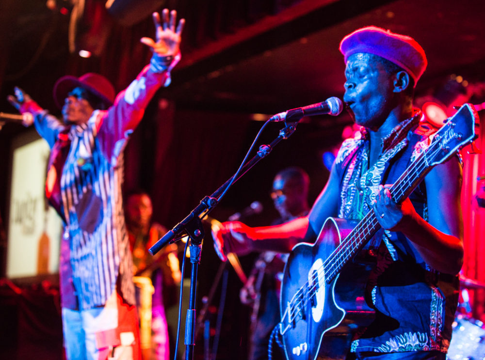 Eventually, Bokondji found a sound that suited him. Something that blended the Western rock, soul and funk he heard growing up overseas and the traditional music he was now versed in. He dubbed it “bofenia rock,” with bofenia being one of the rhythms of Bokondji's ethnic group. In 1990, he formed Okwess International (okwess meaning “food” in Kibunda).