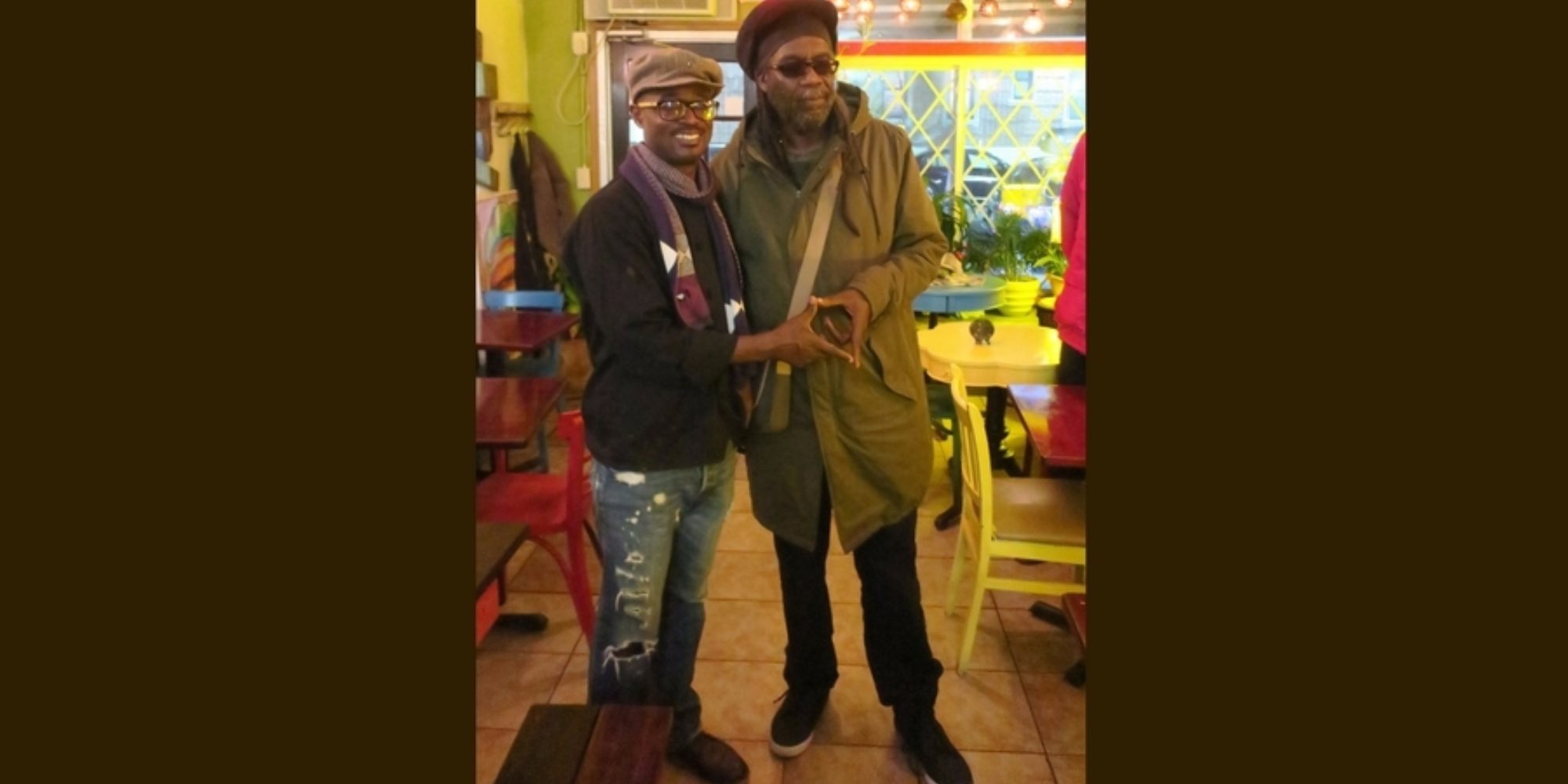 Afropop’s Sebastian Bouknight and Akornefa Akyea recently had the privilege of sitting down to a fine vegan dinner with Macka B and his retinue when he was in New York for a few days. We ate at Ital Kitchen, a cozy Jamaican ital (Rastafarian) restaurant in Crown Heights, Brooklyn. We were the only people in the restaurant while we ate and got to talking with the chef. Although the chef also hadn’t known of Macka B, while we ate, several of Macka B’s songs came over the sound system via the restaurant’s Spotify Radio. Good vibes indeed. Between us we tried the tumeric stew, a vegetable stir fry called “Stir It Up Nice,” a vegan Thai stew and some ital vegan jerk chicken (veggie chunks). Once we’d ordered, we started talking.