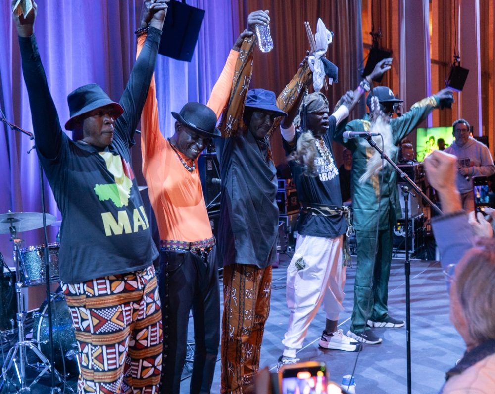 But for us, the crowing set of the night came from Mali (are you surprised?) Bamba Wassoulou Groove is dedicated to upholding the pentatonic, guitar-driven Bambara sound pioneered by the late Zani Diabaté. Three former members of the Super Rail Band of Bamako play in this killer five-piece ensemble. We caught them at WOMEX 2023, and featured them in a recent episode of Planet Afropop. But the show the delivered at globalFEST was simply beyond.