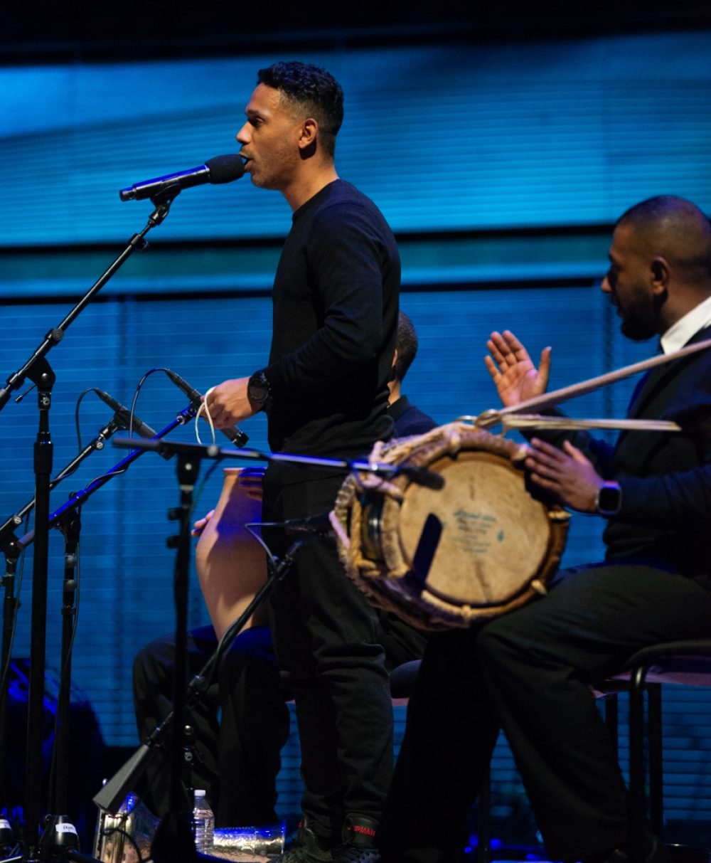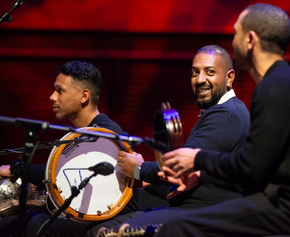 From there, 10 acts performed on three stages at Lincoln Center, beginning with Ghazi & Boom.Diwan with Arturo O’Farrill. If you follow the preceding link, you’ll learn the origin of this remarkable collaboration between O’Farrill of New York’s Afro-Latin Jazz Ensemble, guitarist and ethnomusicologist Ghazi Faisal Al-Mulaifi and musicians from Kuwait’s unique pearl-diving music tradition. It’s an unlikely and remarkable story. As Ghazi told us, “the connection is Africa,” which underlies all of the divergent musics involved. The result was beautiful, a one of a kind experience.