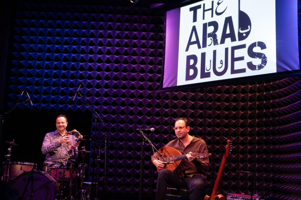 Next came the Chicago-based duo The Arab Blues, an inspired blend of Arab and Chicago blues elements that ranges from interpretations of classic compositions by Egyptian composer Mohammed Abdel Wahab, to garage band blues intensity, all with just two players, the effusive and playful Karim Nagi on percussionist and Rami Gabriel on oud and guitar.