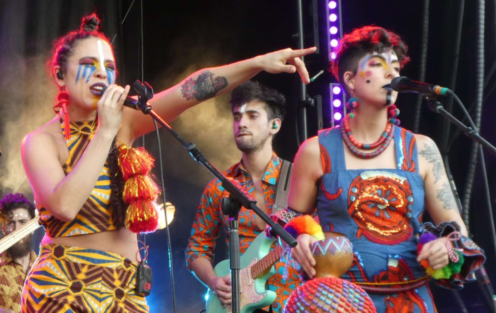 We sat down last week with two members of the group, singer/dancer Macarena “Maca” Rozic and saxophonist Klaus Brantmayer, the day after their stunning performance in Montreal at the Festival International de Jazz, to talk about the band, their music and their politics which infuses their music. We even learned a few words in Mapuche.