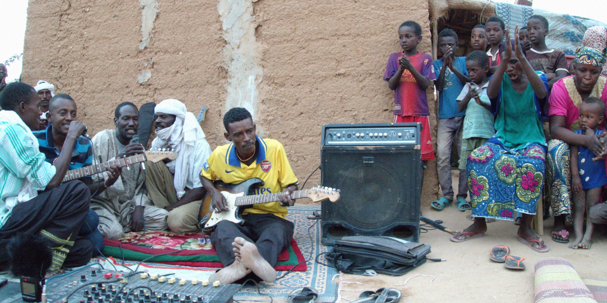 If the opening track, "Etran Hymne," on Etran de L’Aïr’s first album sounds like a tape of a DIY show—beginning in a haze of buzzing amps, tested guitars and warm up vocals—it’s because that’s pretty much what it is. The band set up outside of their family compound in the outskirts of Agadez, Niger, and got down to business. For this band, “business” is a playful, buzzy electric version of Agadez’s wedding music. It’s like the desert blues popularized by Tinariwen or Ali Farka Toure but without the blues. These songs start with dueling lead guitars winding through the pentatonic scale and, in the course of their three to nine minutes, somehow build to towering climaxes.