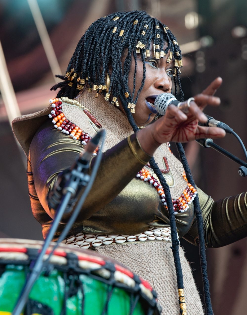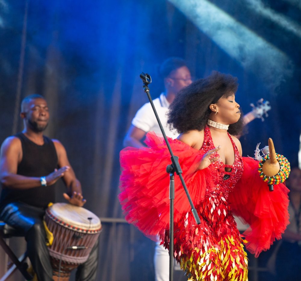 Tyrane Mondeny of Cote D’Ivoire was a revelation. A self-described “Lion on the stage,” she delivered a riveting set merging Mande tradition with gut-bucket blues and R&B. Her band includes possibly the most forceful bass player in the whole festival! Tyrane is finishing up her debut album, definitely one to watch!