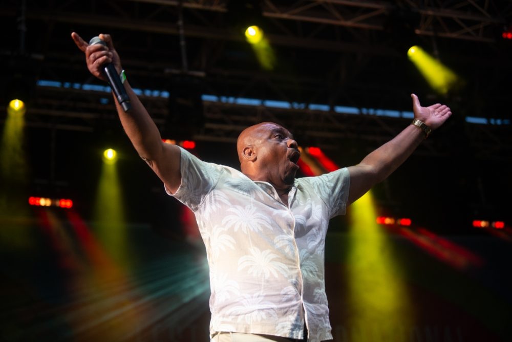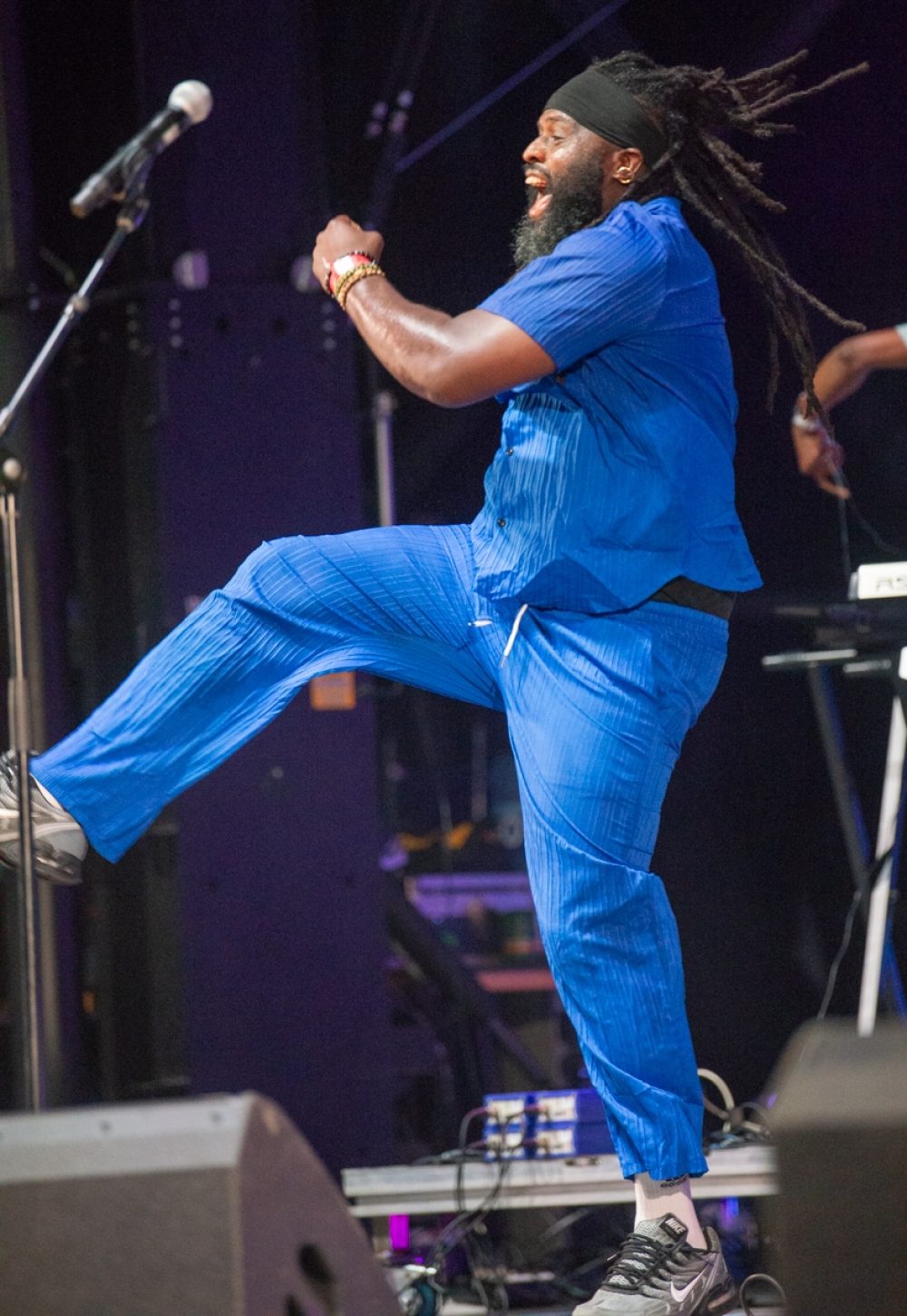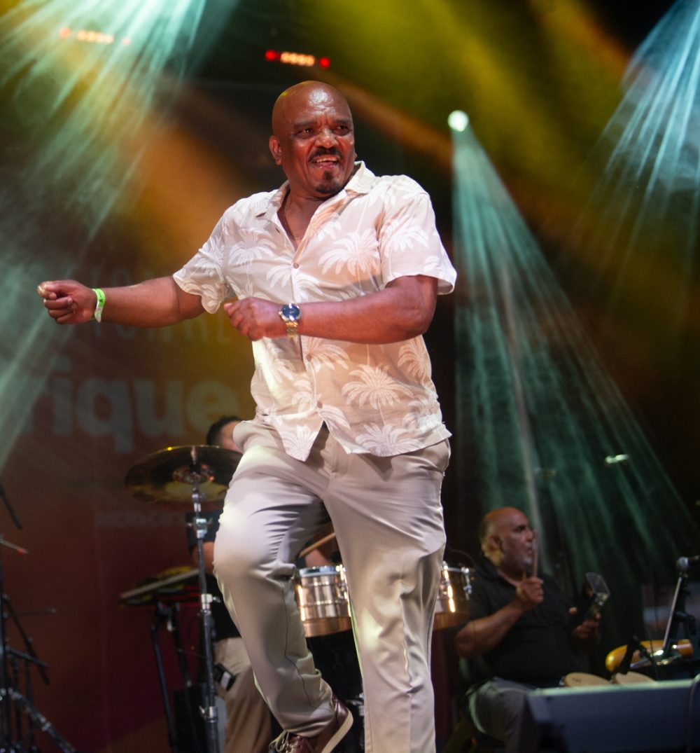 The quality of the locally based acts is a testament to the tireless work of the Nuits D’Afrique staff in mentoring and supporting artists as they have grown from enthusiastic amateurs to seasoned professionals. A key aspect of that has been the Syli D’Or battle of the bands at Club Ballatou. The club was started long ago by festival founder Lamine Touré of Guinea, a constant presence at festival events and now a legend of Montreal culture. The contest takes place in the dark of winter, with three bands playing each night. The audience picks winners who advance to the next round. When it comes down to nine acts, Afropop Worldwide weighs in, awarding one of them the Afropop Prize. This year it went to an outstanding salsa-dura band called Marzos, fronted by Colombian guitarist and vocalist Mateo. Marzos and Mateo will be featured in a future post. Their performance on the main stage, the Radio Canada stage, on July 17 was sensational, an absolute confirmation of our choice.