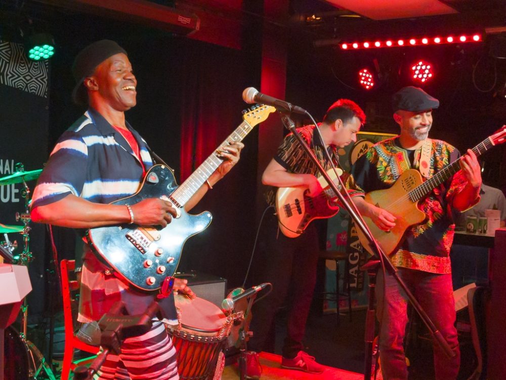 We had heard of this dynamic singer from Cameroon, and knew of her association with that country’s high-boogie bikutsi music, a genre that almost no act on the international scene performs. But we were unprepared for the barrage of rhythm and melody this trio kicked out. And Valerie is a dynamo on stage. Again, she had to leave after the show, but rest assured we’ll be speaking with her soon.