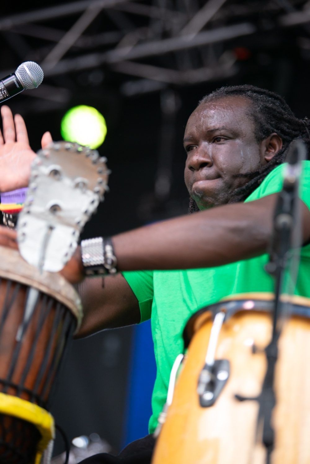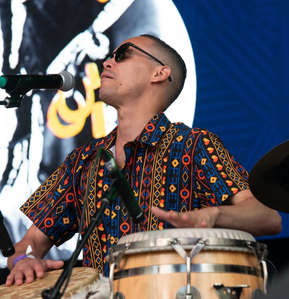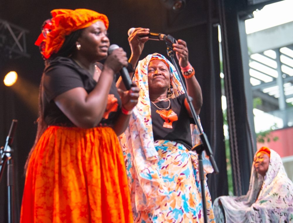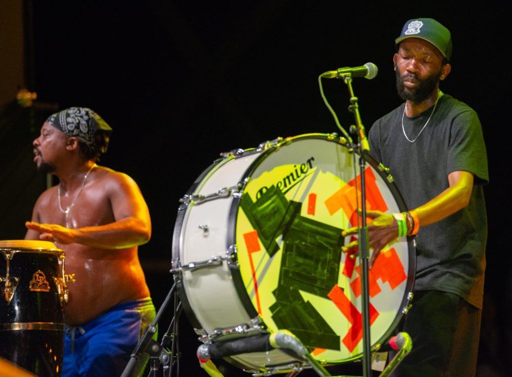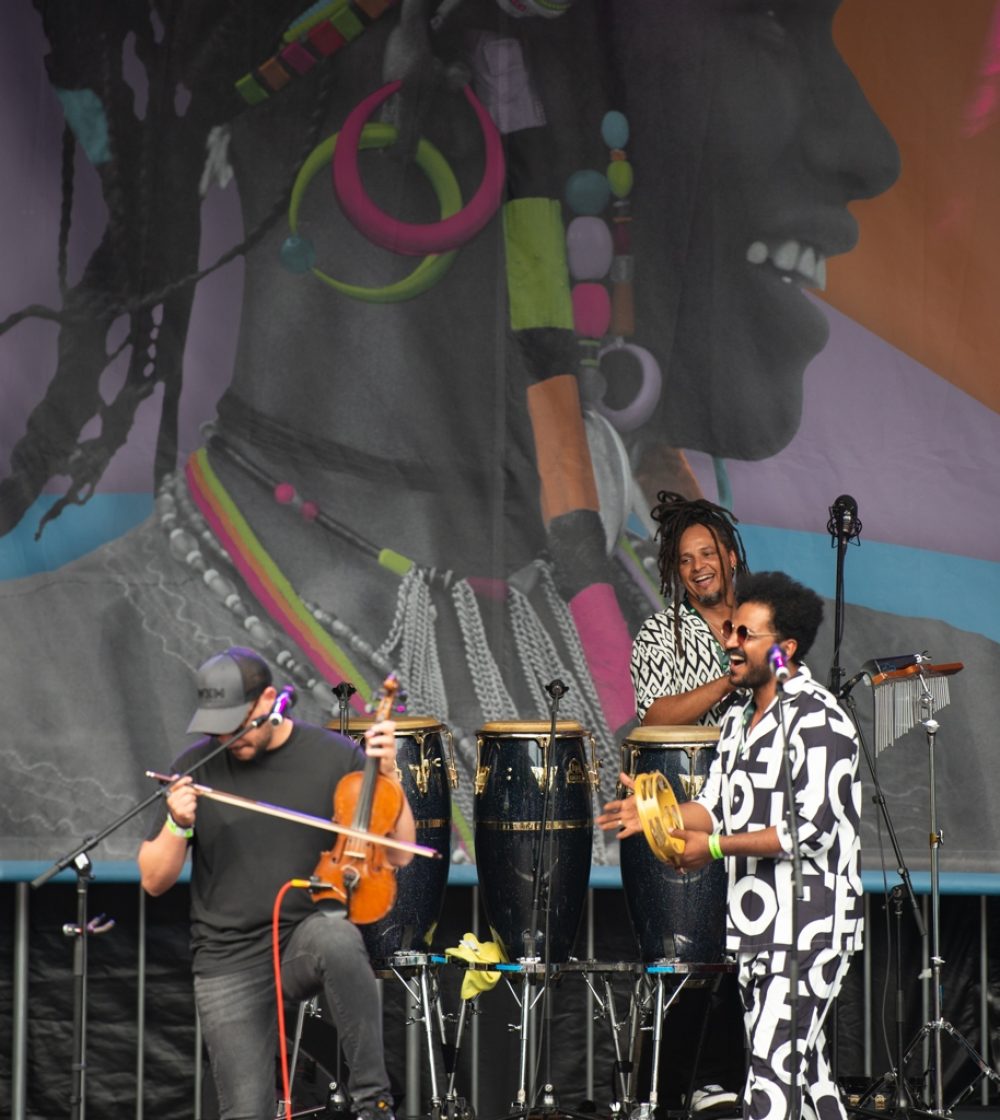 Montreal Afro-futurist musician Afrotronix has been working with this vocal and percussion women’s group, giving motherly (auntiely?) advice and council to women. Afrotronix helped produce a cool, techy video, but the charm of this show—which happened during one of the festival’s few rain downpours—was the acoustic vocals and dance interactions among these fabulous women. The crowd response was overwhelming!