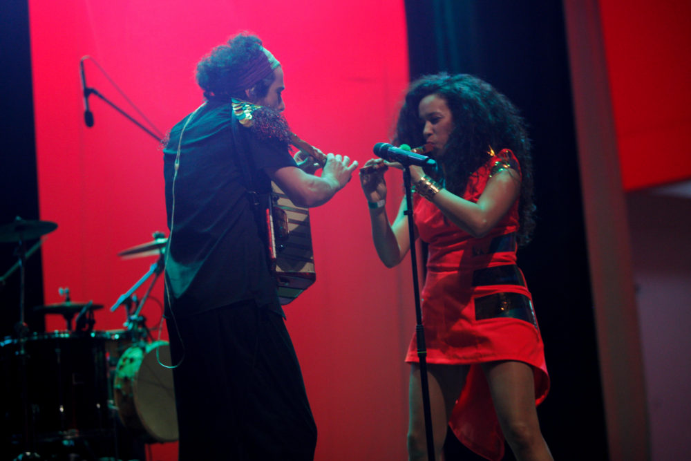 La Yegros, a scintillating electro-cumbia queen from Argentina, performed at the AME opening concert in the stately National Assembly. In her reflective red spacesuit dress, big shoes and bountiful hair, she and her band played a futuristic swirl of dancehall, cumbia, funk, reggaeton and Argentinian chamamé.