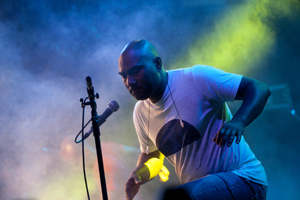 Praia understood it. Guiss Guiss Bou Bess’s thundering rhythms—from Seck’s drums and Constantini’s laptop—commanded the crowd to their feet. A Senegalese sabar troupe based in Praia hopped on stage and showed what the dance looks like: four limbs flying faster than light, all seemingly independent from each other. Their show was wildly fun.
