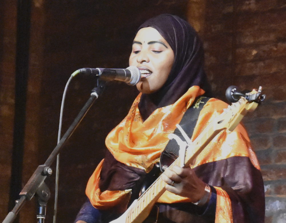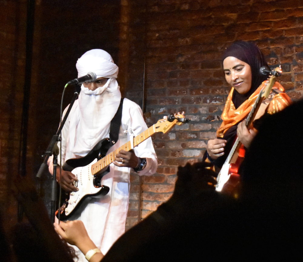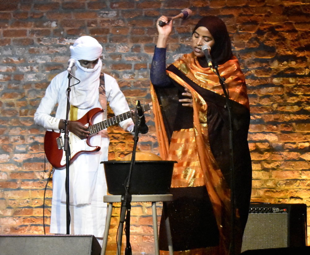 But Ghali and her bandmates—brother included—bring a unique touch to this well-traveled instrument. Melody flickers up like a spark from a fire, riding above the tende, which is both the genre and drum that the band plays, along with a calabash floating in a bucket of water, which one might think would deaden the sound, until you witness the booming bass it produces.