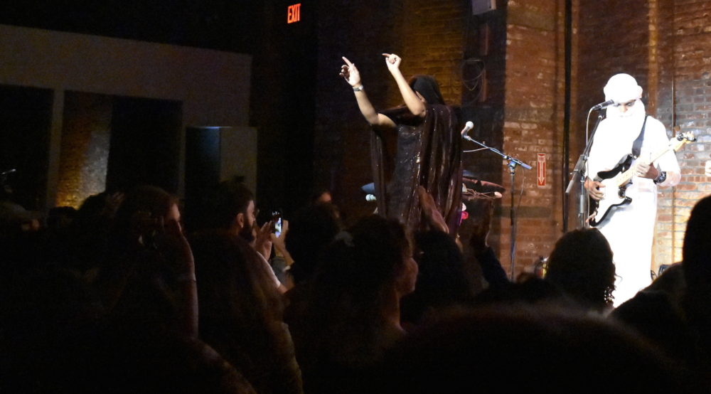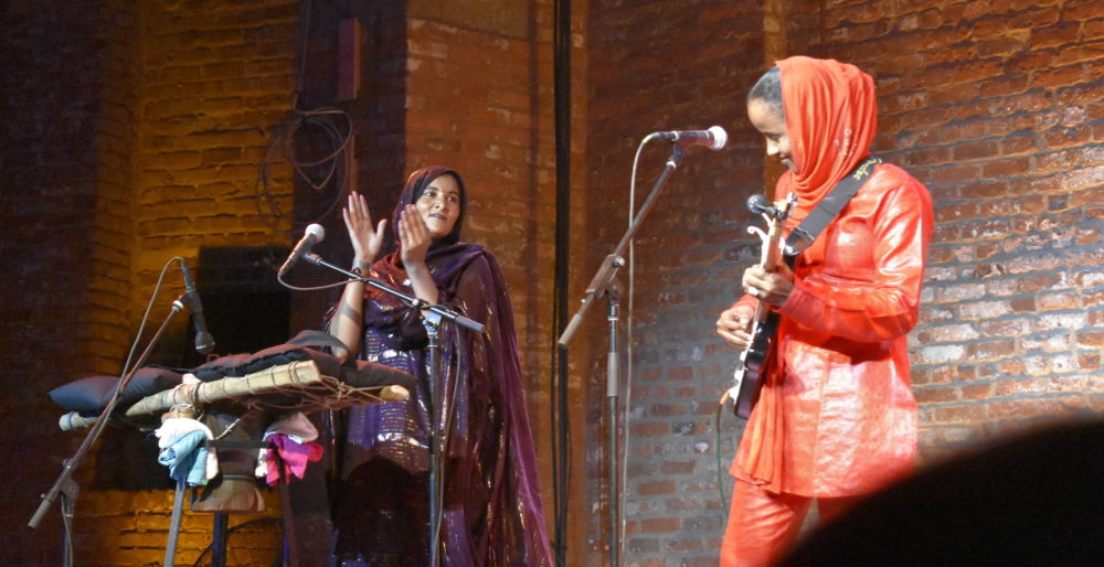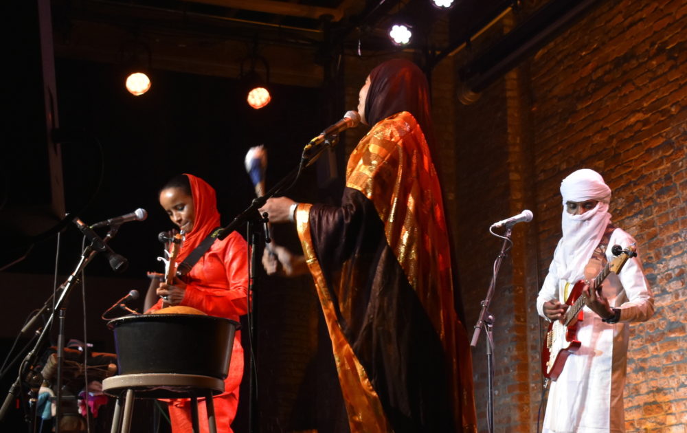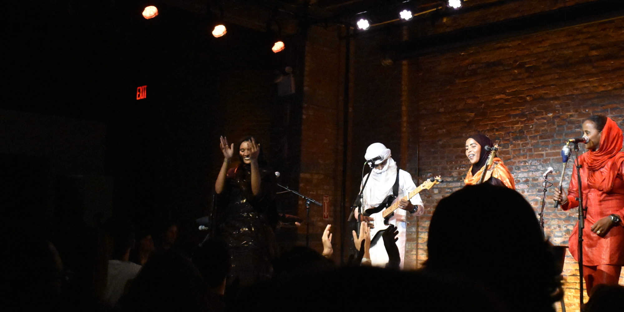 Blocks from Brooklyn's old waterfront in Red Hook, Pioneer Works is a gallery and occasional performance space, and as the band started playing, the audience sat hushed, like a cultural crowd in an art space does. But half an hour into their set, crowd and artists warmed to each other, and Les Filles began swapping instruments and loosening up. They seemed to be sharing inside jokes and smiles, and Alamnou Akrouni took longer and longer breaks from on tende to get everyone to clap, until the whole room felt like they were in on something. And they were.