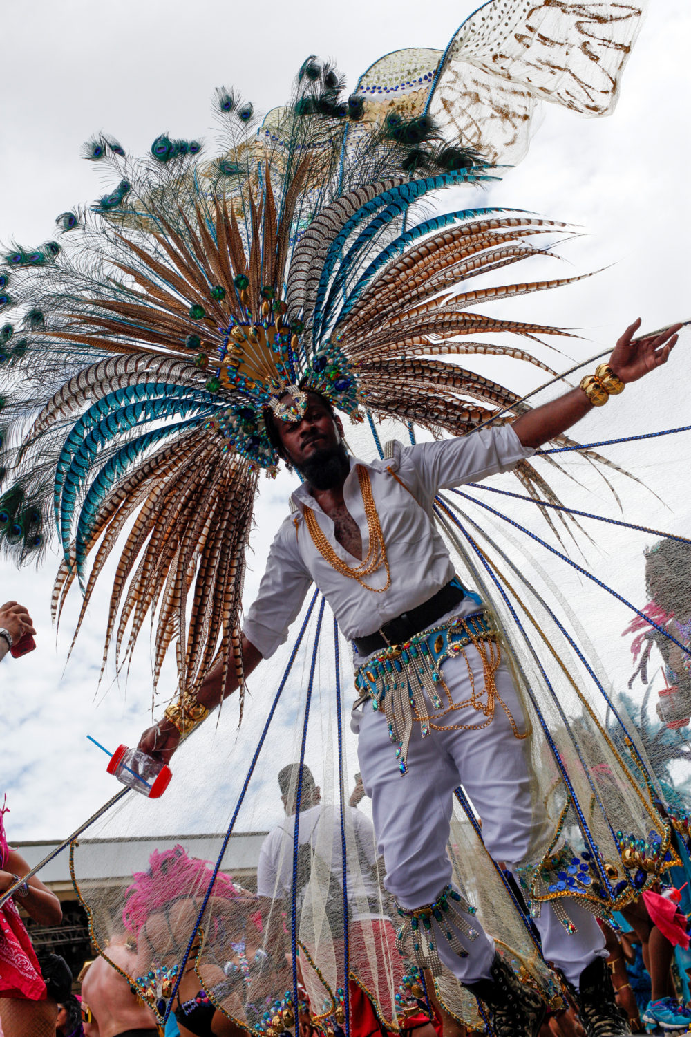 Tuesday is when the real-deal glitz and glamor come out. The extravagant costumes are on full display as the masses parade through the streets of Port of Spain. At some point during the day, every band will cross the expanse of the Queens Park Savannah stage. Here, their costumes are judged. Each band waits on one side of the stage, held back by security as the music pumps them up. When it is their turn, they are released and they run madly across the stage, dancing and showing off to the full extreme.