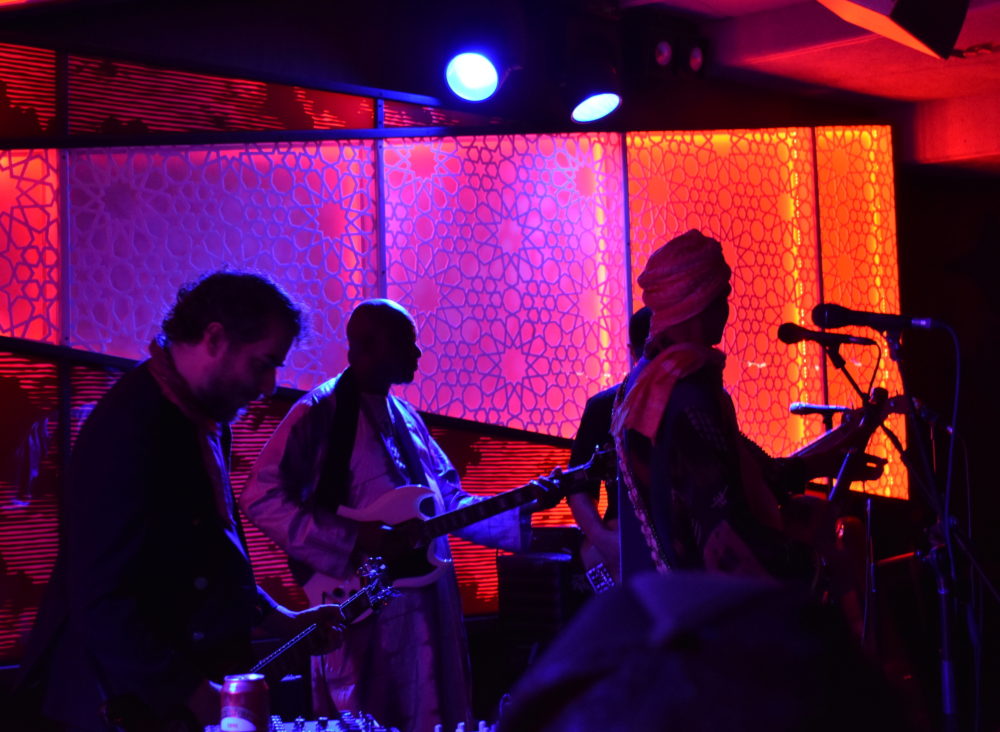 Joined by Gat and ex-Swans bassist Christopher Pravdica, North Africa and the Sahel met the noise rockers. Swells of feedback, distortion and reverb began clanging around the room. Drummer Cinque Kemp found a loose, jam-band 6/8 that was mostly compatible with Maalem Hassan’s Gnawa pocket, and the groove was on.