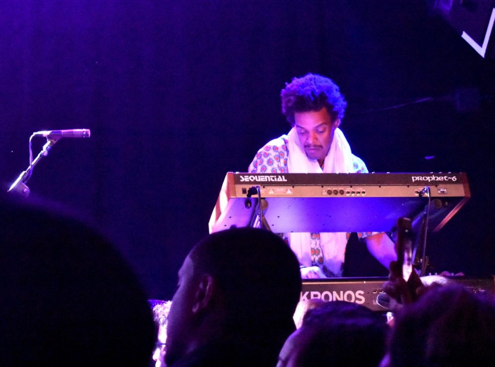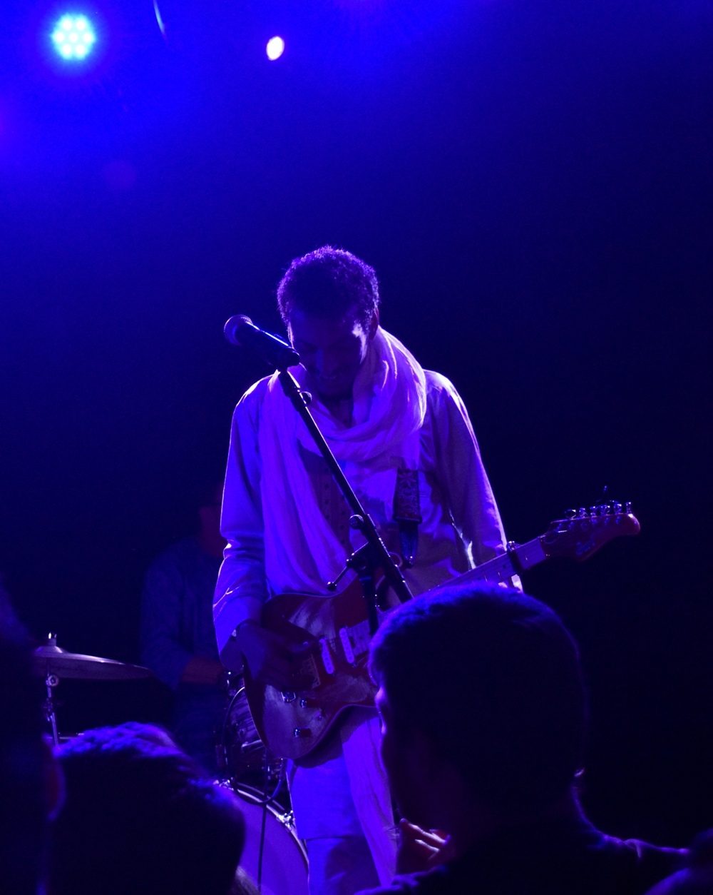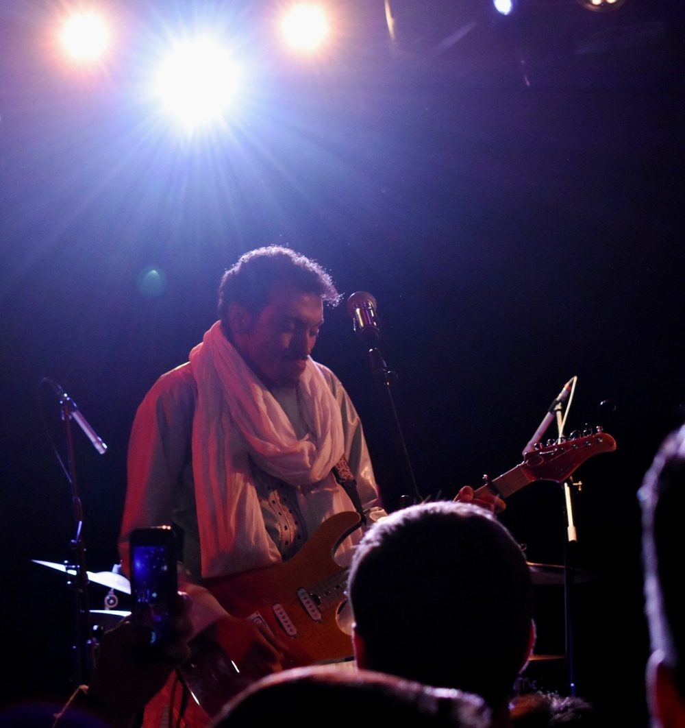 Presented by World Music Institute, Bombino was backed by Group Bombino, a quintet of two guitars, synthesizer (and occasional keyar), bass and drums. A typical Bombino song is in a swinging meter, driven by a back beat that occasionally skews to reggae. At several points in the night Bombino would be soloing as his backing band slowly and steadily built tension, until finally with the crack of the snare, it felt like a storm was breaking and the band sped off in euphoria, Bombino’s fingers becoming a blur.