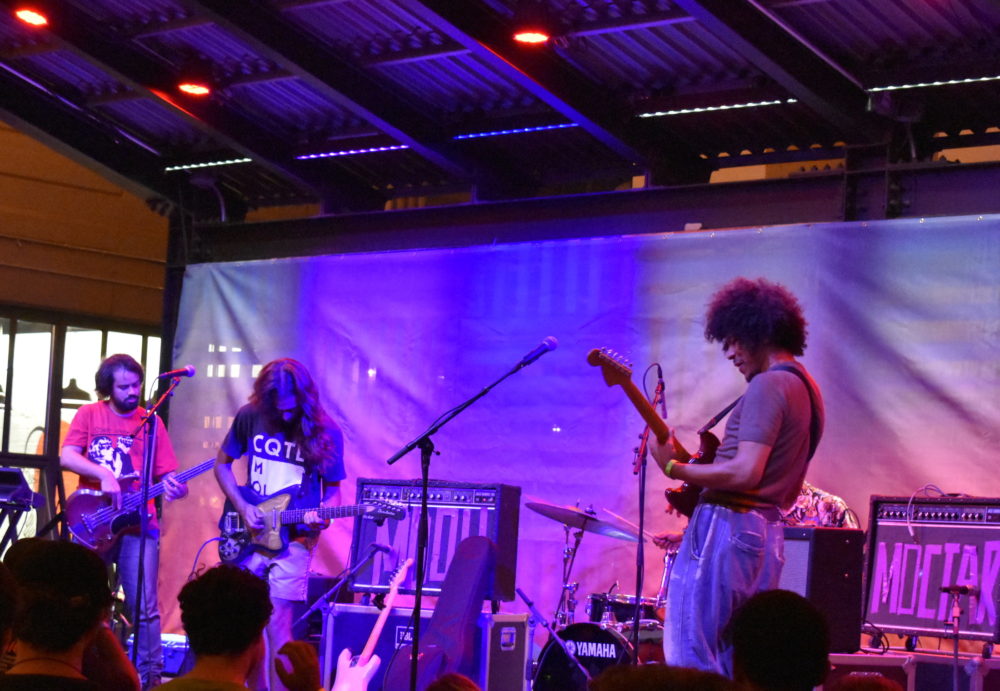While Moctar's band is all jagged notes and sharp angles, Boogarins is more like a fog—delay pedals and synth bass notes formed a morass that enveloped the appreciative Industry City crowd.