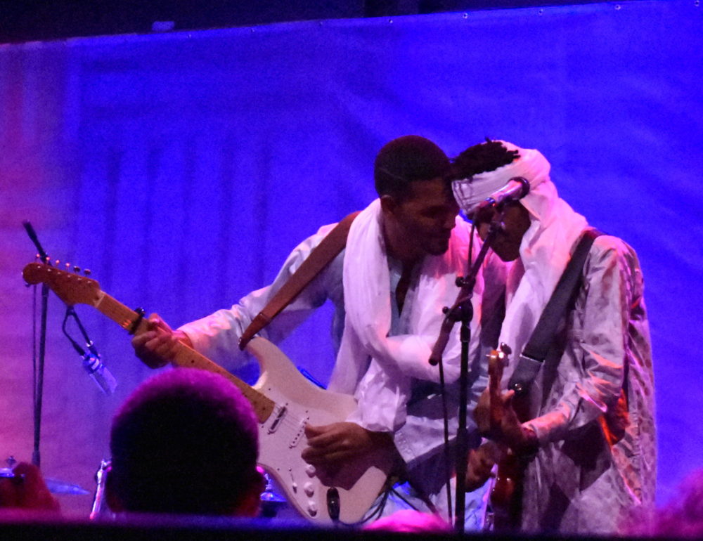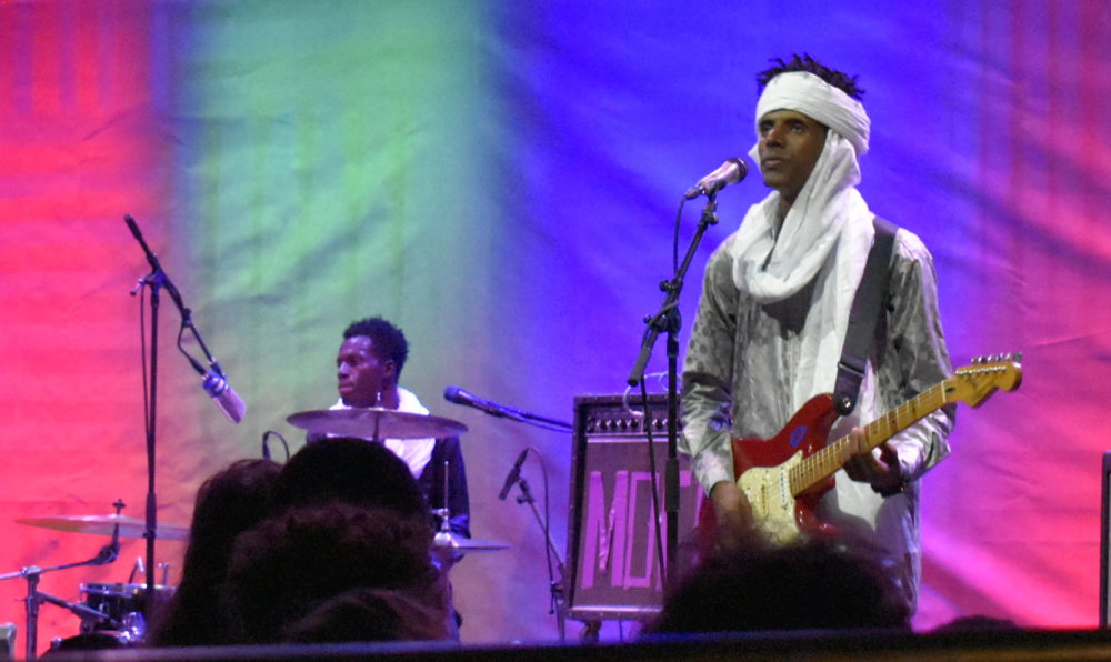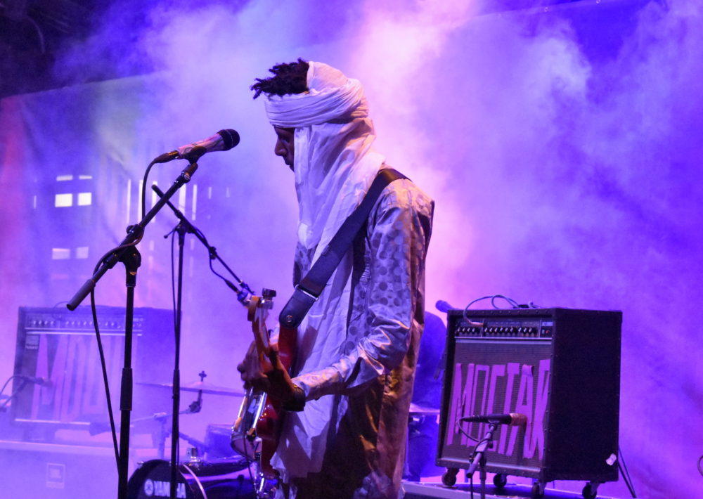 Mdou Moctar drew from his latest album of blistering Sahara guitar work. His profile's been on the rise this year, and he played like it—a smile on his face, taking moments in between solos to pump the crowd up as his band vamped, vamped and kicked it into a higher gear as Moctar came back in.