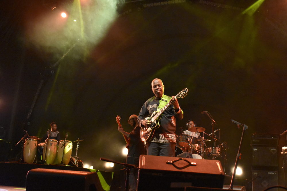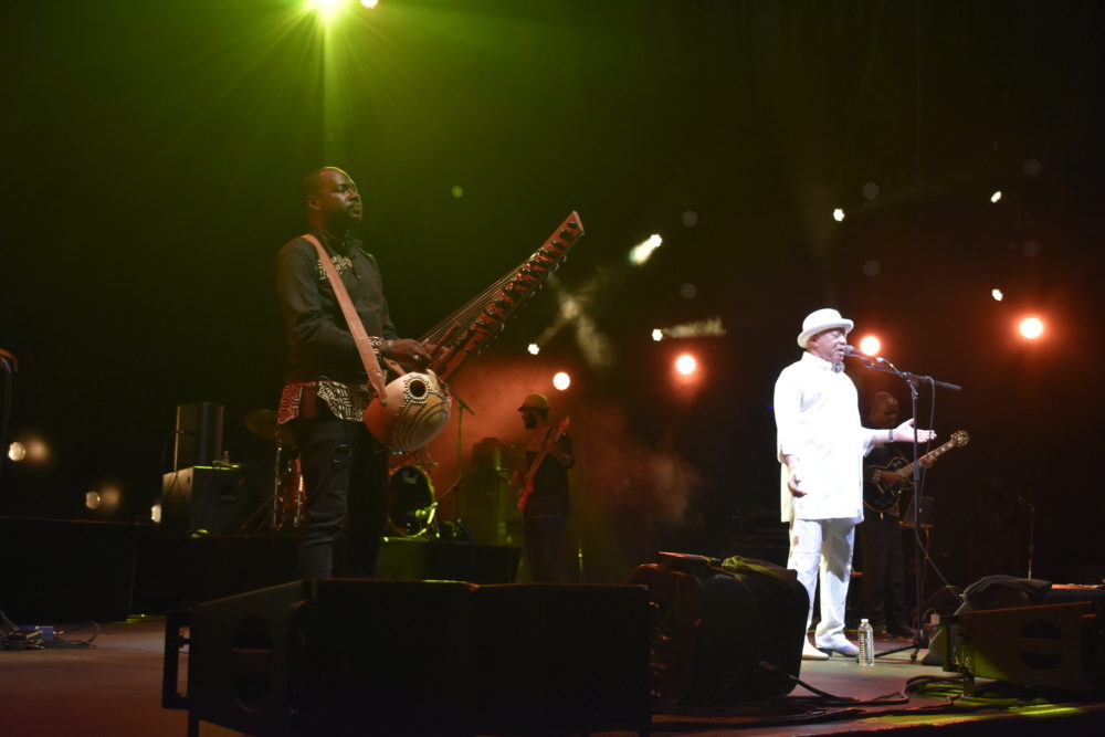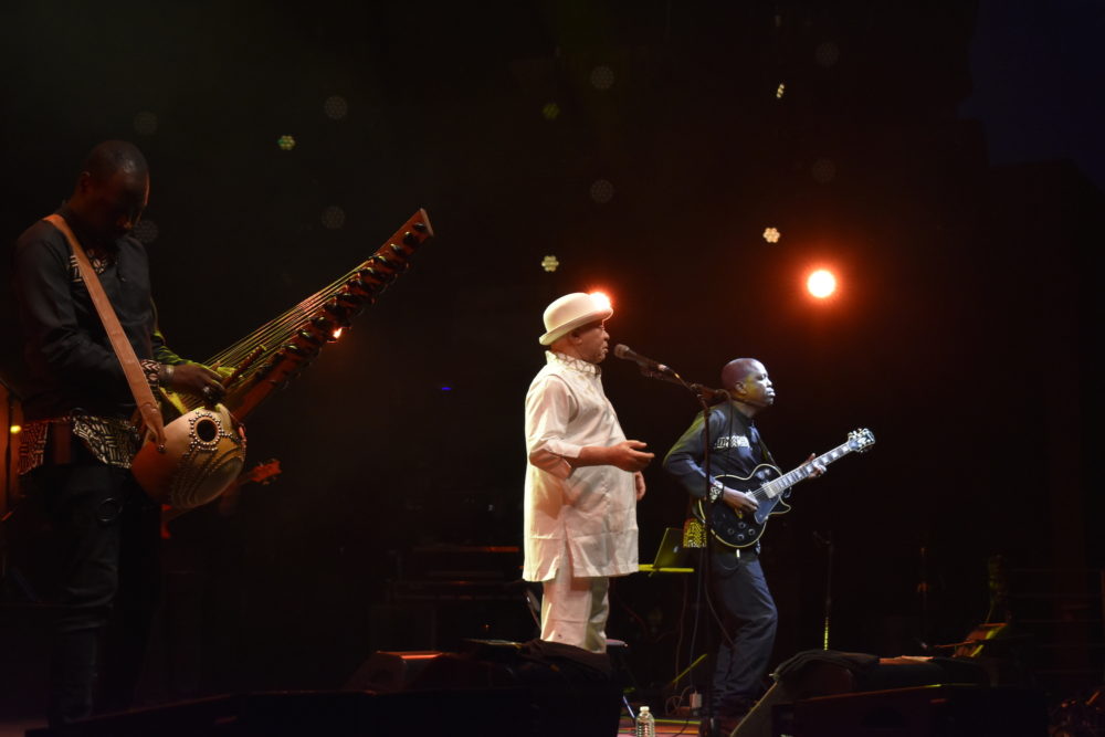 Salif seemed genuinely moved to receive the Afropop Hall of Fame award. It goes to honor African artists of the highest musical achievement who have made major contributions to connecting Americans with the continent. Then Salif introduced his band and performed an energetic set that had some 5,000 fans on their feet dancing to classics like the buoyant “Tekere,” as well as songs from his newest album Un Autre Blanc. Special moments included a gorgeous kora solo by Mamadou Diabate and a sublime solo piece by Salif, accompanying himself with nimble acoustic guitar picking.