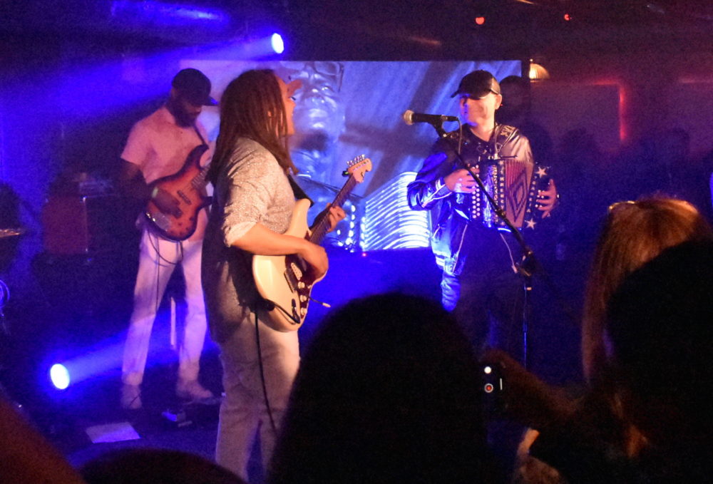 The band played their unique jazz-, r&b- and rock-inflected takes on the DR's popular genres, merengue and a classic bachata cover, yielded center stage to a dance troupe, and welcomed Krency “El Prodigio” Garcia, the famed Dominican accordionist to the stage.