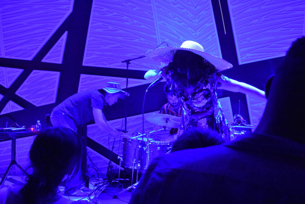 Ava Rocha and her band opened the night theatrically, the singer's face hidden behind a curtain of hair, under a wide-brimmed hat. The band churned out a beat that could only be Brazilian, before giving way to their outre, punk-inflected sound.