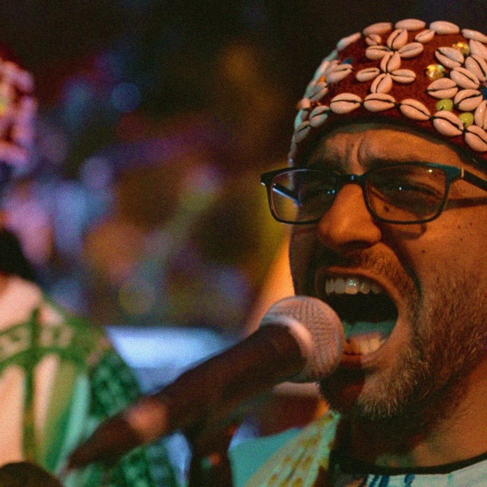 Saha Gnawa joins a long list of ensembles that offer a fresh take on the renowned healing musical tradition of Morocco and Algeria. Gnawa music, with its loping, cyclic grooves and pentatonic scales, lends itself easily to “fusions” with Western music. Artists like Hassan Hakmoun, Kateb Amazight of Gnawa Diffusion, and, more recently, Guedra Guedra, to name just a few of many examples. Anyone who has followed the Essaouira Gnawa and World Music Festival will know that jazz, rock, reggae and hip-hop fusions with Gnawa music abound in Morocco, and around the world. For all that, Saha Gnawa brings something new to the table.