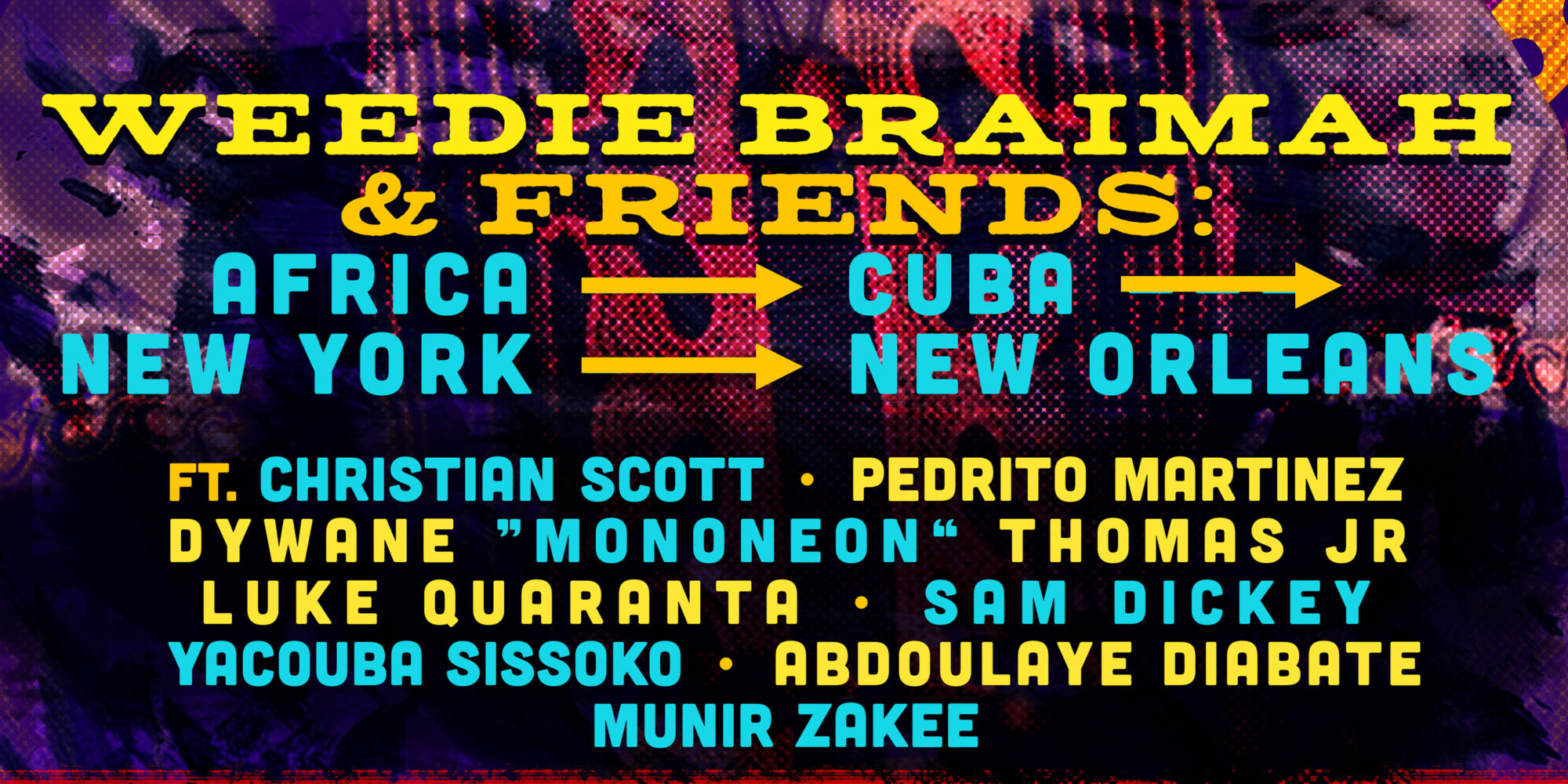 And has he ever. On March 7, Braimah will be the first djembe-playing bandleader to play New York’s prestigious Blue Note jazz club. The show is billed as Weedie Braimah and Friends: Africa, Cuba, New York, New Orleans. It’s a debut outing for this ensemble, and fireworks are guaranteed. The phenomenal Cuban percussionist Pedrito Martinez will be matching percussive wits with Braimah, along with Luke Quaranta, the percussive driving force behind Toubab Krewe. Dwayne “MonoNeon” Thomas Jr. is a dynamic young bass player,like Braimah from a musical family, and notably one of the last bass men to work with Prince. Producer Munir Zakee and guitarist Sam Dickey are also on board, along with two of New York’s finest Malian griot artists, vocalist Abdoulaye “Djoss” Diabate, and kora maestro Yacouba Sissoko.
