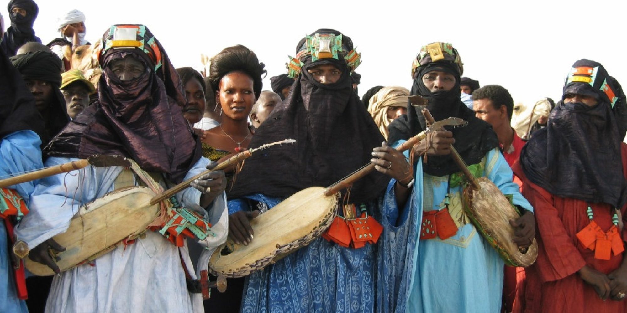The confederations and clans collectively known as the Tuareg descend from the oldest inhabitants of North Africa. They lead a mostly nomadic existence across the Sahara Desert, in the lands we now know as Algeria, Libya, Niger and Mali. Tuareg communities have long felt neglected by independent African governments, especially in Mali, which has endured a succession of rebellions. In 2012, a Tuareg uprising led to a year-long crisis in which the Malian north separated from the country and fell under harsh control by Islamic extremists. Ironically, these extremists banned music, which in the hands of modern bands like Tinariwen had been a crucial means for expressing Tuareg aspirations. This broadcast unravels the complex history and provides a vivid portrait of the Tuareg predicament in Mali today. The program samples a rich variety of Tuareg music and includes conversations with Tuareg musicians and cultural authorities in the wake of Mali’s crisis, along with University of Houston anthropologist Susan Rasmussen, who has been researching and writing about Tuareg culture for over 30 years, and veteran journalist and author Andy Morgan.